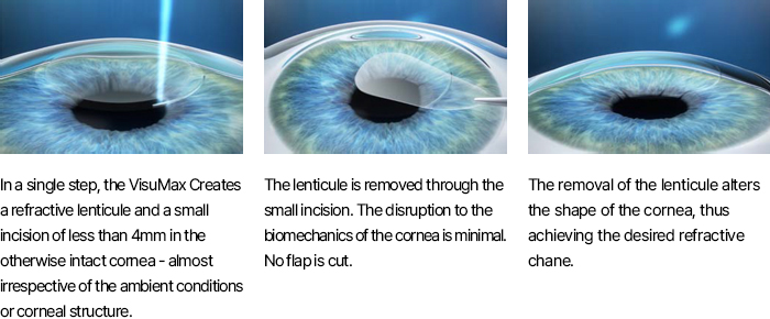 The Zeiss VisuMax laser is the only laser in the world that can perform ReLEx SMILE. VisuMaz uses femtosecond lasers to produce extremely short pulses of laser light which are used to divide corneal tissue layers. To minimizes corneal damage,