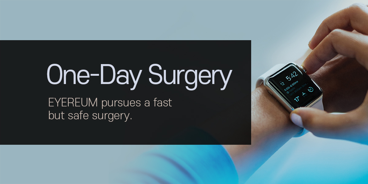 EYEREUM One-Day Surgery is a system where you can undergo both the preliminary screening examinations and the surgery in one day. Just because the entire process is done in one day, it doesn’t mean you skip any tests. The preliminary screening process is identical with the regular 50 basic examinations and 10 special tests and the surgery is performed based on your results. Also while you wait for your test results, you can take the requisite DNA test. The safety of your examination is not compromised in any way.