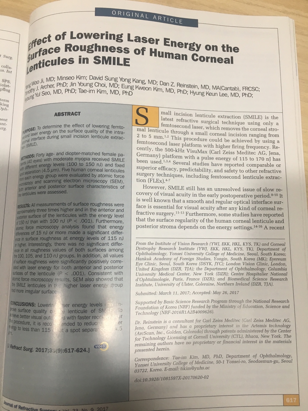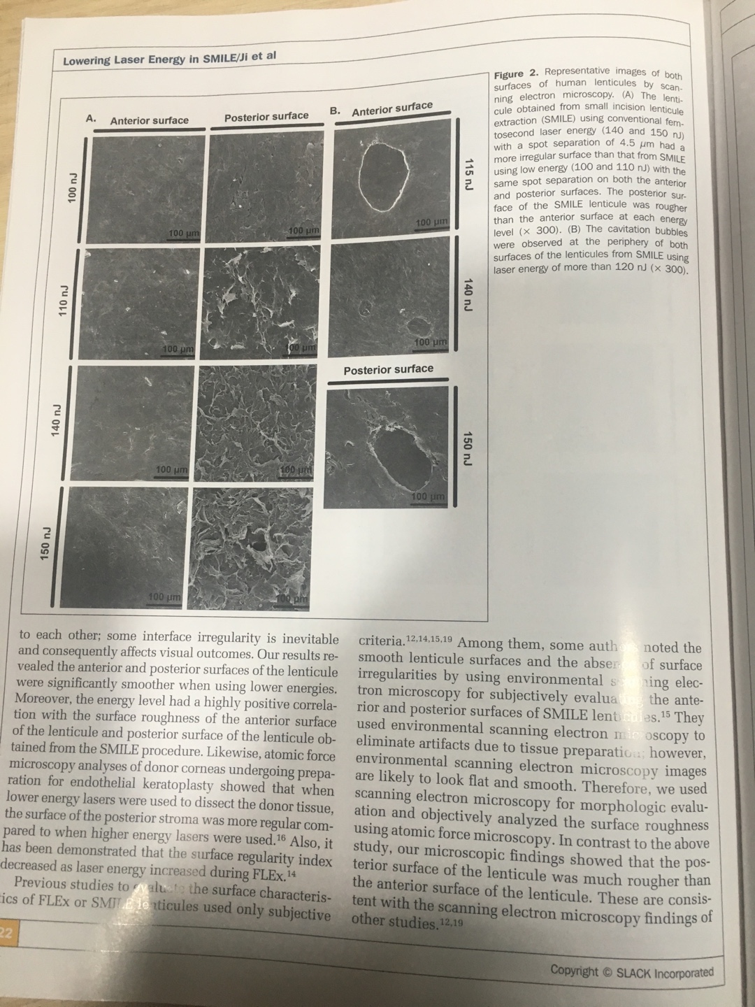 Lowering laser energy levels can improve surface quality of the lenticule of SMILE.(Dr. David Kang , Jin Young Choi)