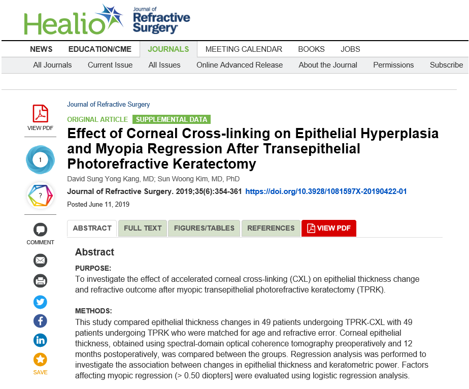 [Paper] Effect of Corneal Cross-linking After Transepithelial Photorefractive Keratectomy