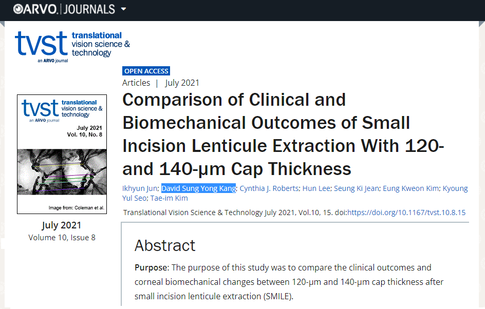[Paper]Comparison of Clinical and Biomechanical Outcomes of Small Incision Lenticule Extraction With 120μm and 140μm Cap Thickness