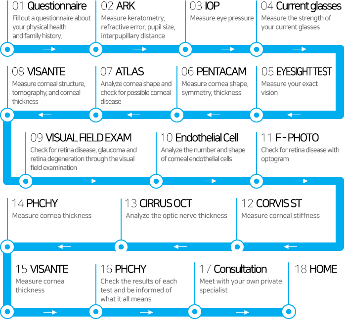 The exact condition of your eyes can be assessed with the results from the various comprehensive tests, so the most suitable surgery can be chosen for your eyes. Surgery method, recovery time, and any precautions before and after surgery will be informed, and any question and inquiries you might have will be answered.