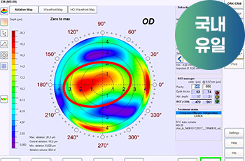 각막 및 홍채, 수정체 등의 상태를 입체적으로 보여주고 각막의 입체적인 지형도까지 정확히 측정 가능한 검사입니다. 수술 전, 후 각막절편의 두께를 미리 시뮬레이션하여 수술 후 부작용을 미리 알 수 있습니다.