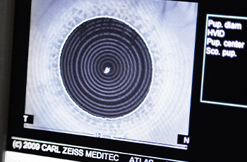 고도근시에서 야간에 동공크기가 큰 경우 야간 빛 번짐이 생길 수 있습니다. 따라서 실제 야간상황에서의 동공크기를 정확히 측정함으로써 수술 후 이런 문제의 가능성을 미리 예측할 수 있습니다. 이 검사로 야간 동공크기를 측정하여 각막절편크기와 레이저 조사범위와 방법을 결정 할 수 있습니다.