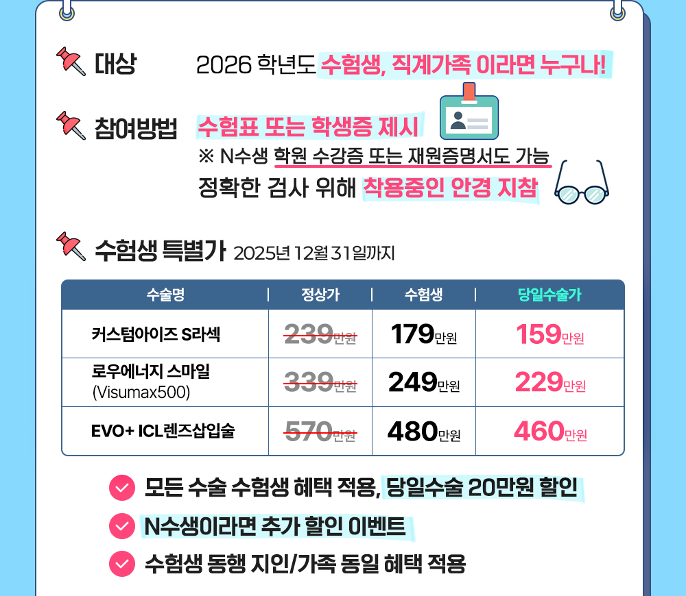 수험생 시력교정술 혜택 | 본 이벤트 확인하기!