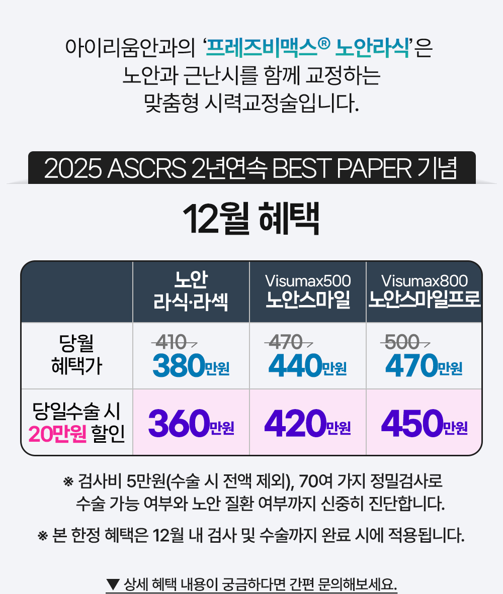 SCI논문등재! 프레즈비맥스 노안라식 12월 당일수술 20만원 혜택