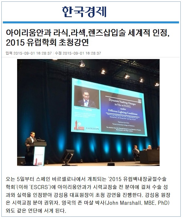 세계 최대 규모의 안과학회 <2015 유럽백내장굴절수술학회>에