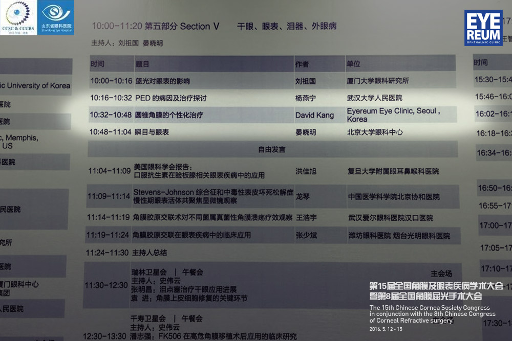 [소식] 코웨이브를 이용한 원추각막 및 부작용 치료 임상증례 발표 (CCSC&CCCRS 2016)