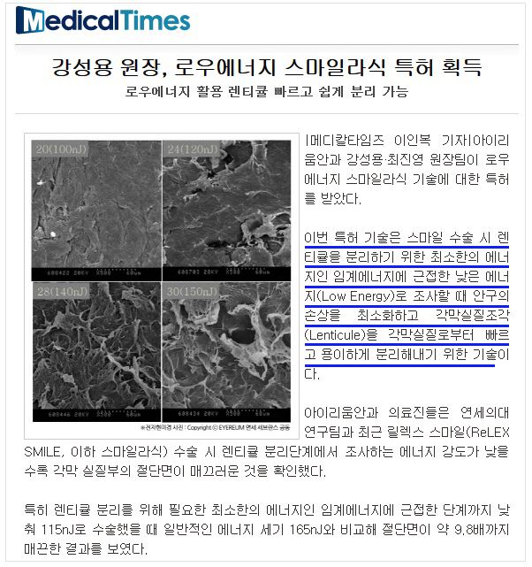 [소식] '로우에너지 스마일을 위한 렌티큘 분리 기술' 특허 획득