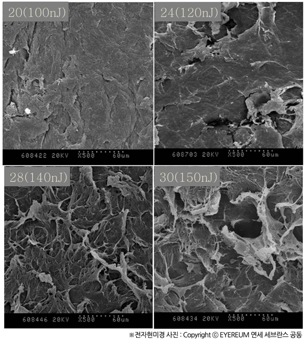 일반적인 스마일 수술 시 사용되는 에너지 세기 165nJ과 비교해
