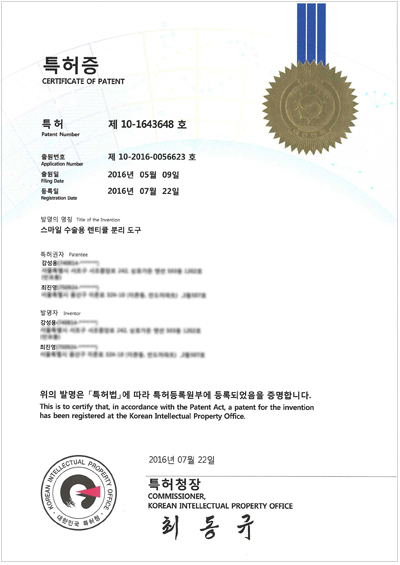 7월 22일 국내 특허권을 인정받게 되었습니다.