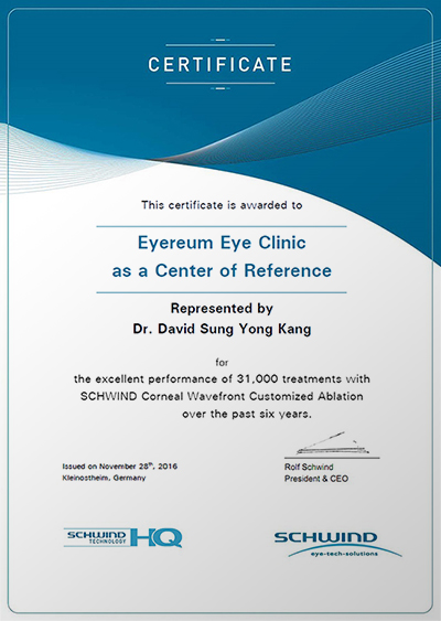 Corneal Wavefront 31,000안 달성을 공식 인정받았습니다.