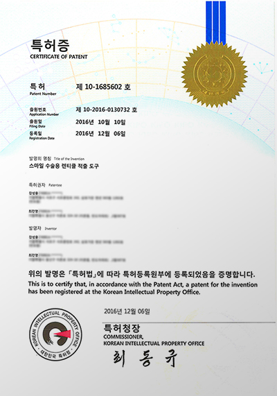 렌티큘 박리를 빠르고 용이하게 할 수 있는 기술(도구) 특허를 취득하였습니다.