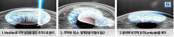 각막 실질부에 시력 교정량만큼 조각(Lenticule)을 만들어