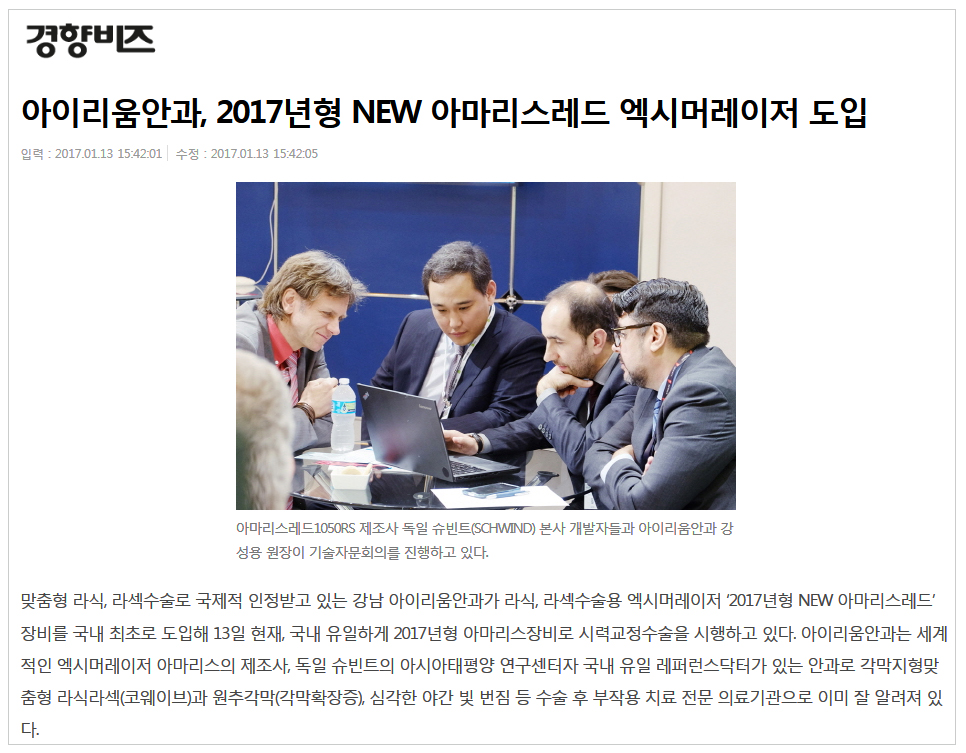 [소식] NEW 2017 아마리스 레드 엑시머 레이저 국내 안과 중 최초 도입(2017.1.12 기준)