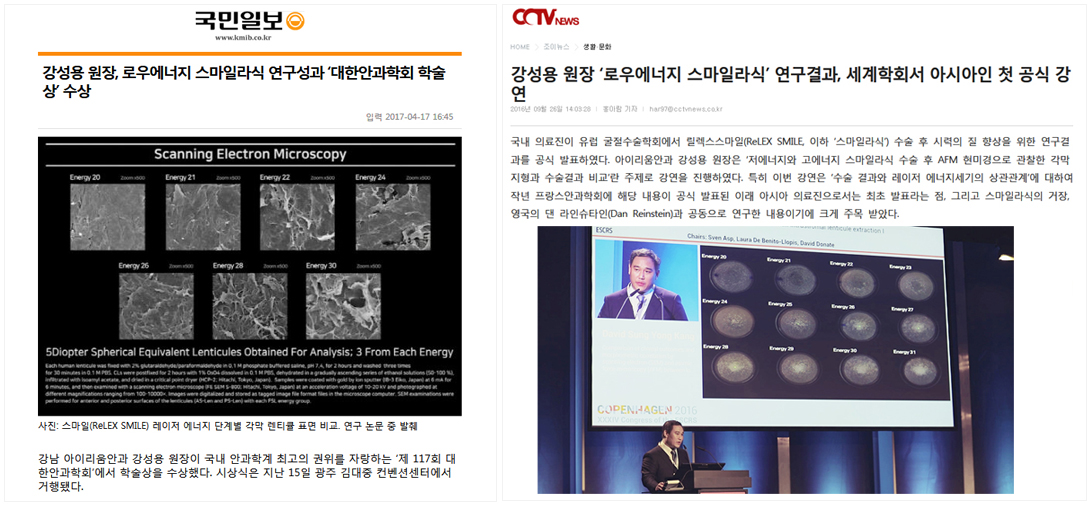 ※강성용 원장 '로우에너지 스마일라식'연구결과, 세계학회(ESCRS)서 아시아인 첫 공식 강연>> http://www.cctvnews.co.kr/news/articleView.html?idxno=57436