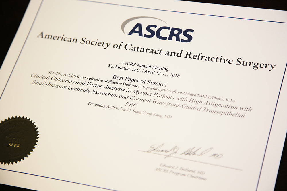 [소식] 2018 미국백내장굴절수술학회 'BEST PAPER' 스마일라식 트리플 센트레이션