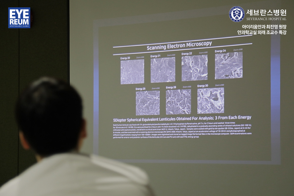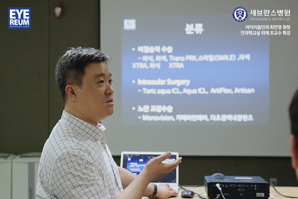비디오 논문과 함께 라섹, 렌즈삽입술 등 시력교정 수술에 대해 강의를 했습니다.