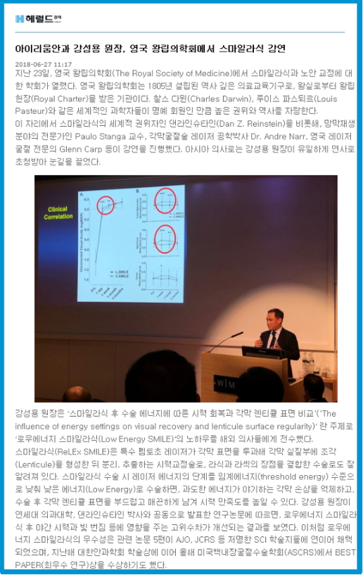 [소식] 강성용 원장, 영국 왕립의학회에서 스마일라식 강연