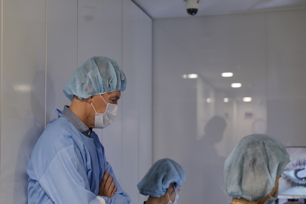 ▲ 아마리스 레드(1050RS) 스마트펄스(SPT) 장비를 이용한 수술을 참관 중인 Dr. Michiel Luger