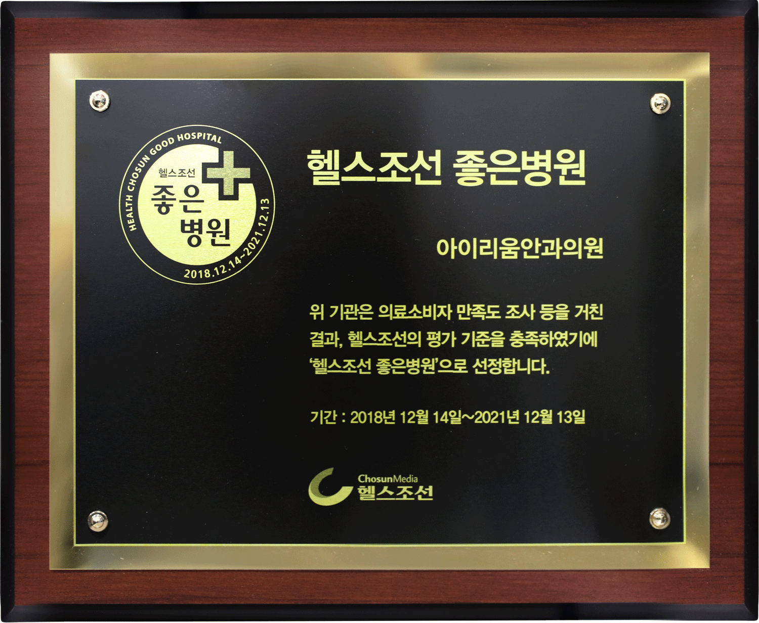 아이리움안과가 '헬스조선 좋은병원'에 선정되었습니다.