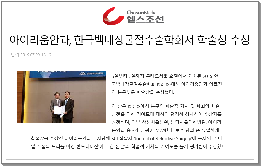 [소식] 한국백내장굴절수술학회 스마일라식 학술상 기념