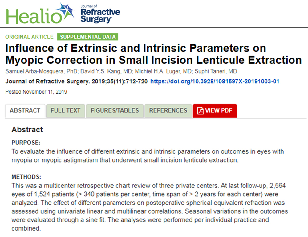 (원제 : Influence of Extrinsic and Intrinsic Parameters on Myopic Correction in Small Incision Lenticule Extraction)