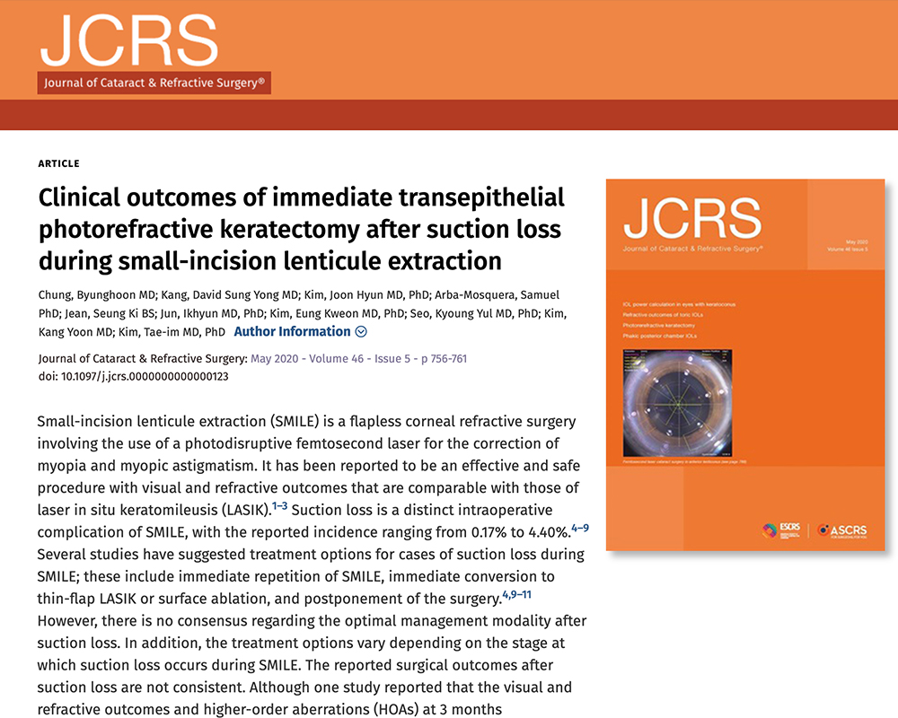 (원제 : Clinical outcomes of immediate transepithelial photorefractive keratectomy after suction loss during small-incision lenticule extraction)