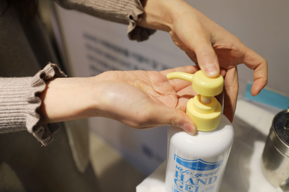 손 소독, 체온 측정을 필수로 체크 후 거리두기를 통해 이동합니다.