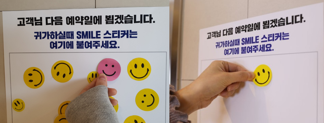 진료 종류에 따라 분홍/노랑 스티커를 붙이시게 될거에요 :)