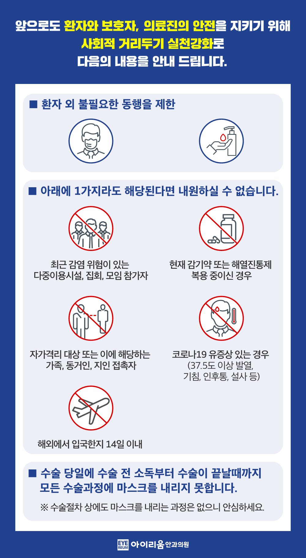 아이리움안과는 고객분들의 안전을 지키기 위해