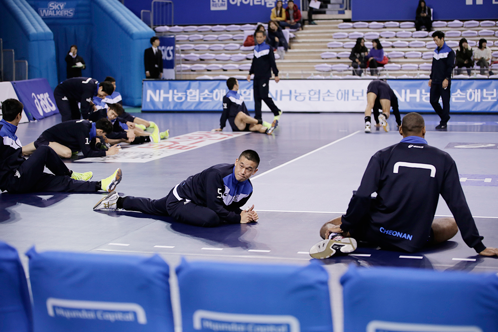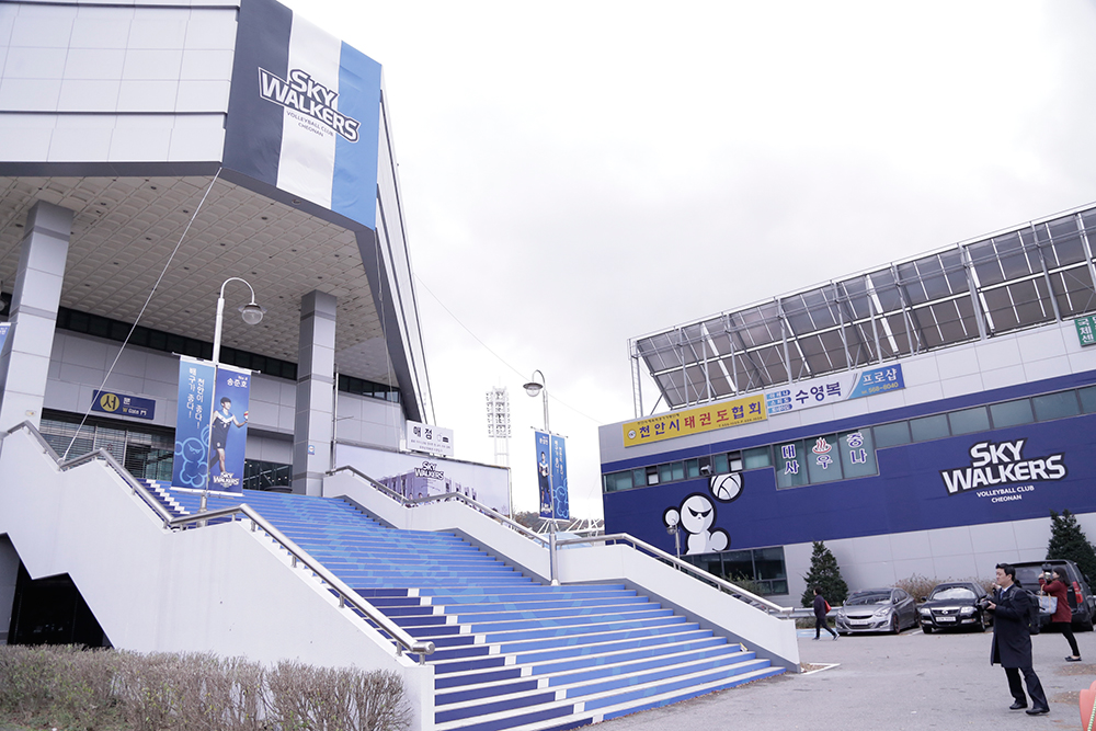 협약식을 맺기 위해 방문한 곳은 현대캐피탈 스카이워커스의 홈구장인 천안 유관순체육관이었습니다.