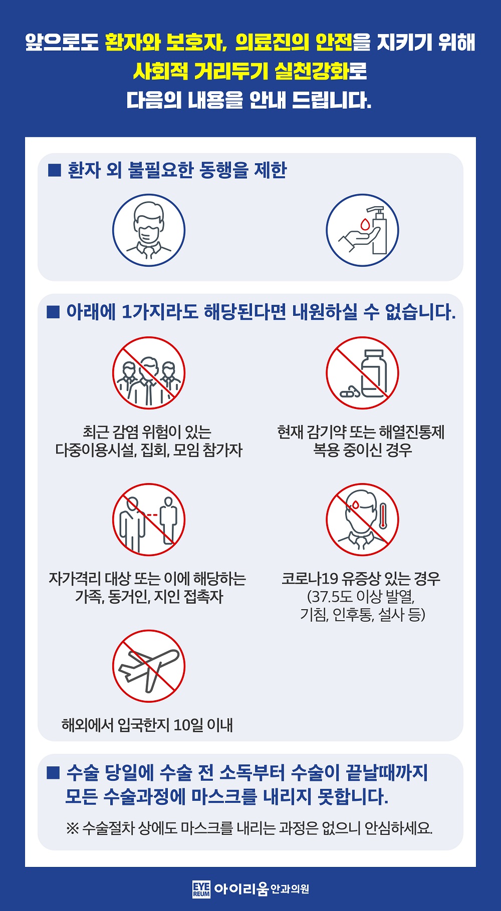 앞으로도 아이리움안과는 감염위기에 더욱 철저히 대응하며
