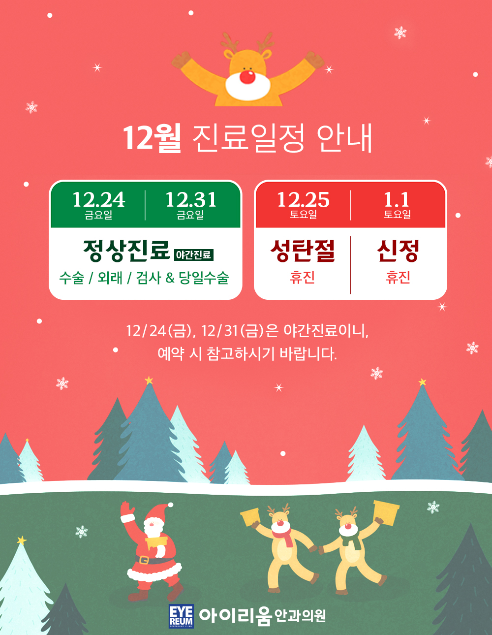 아이리움안과의 12월 진료일정 안내 드립니다.