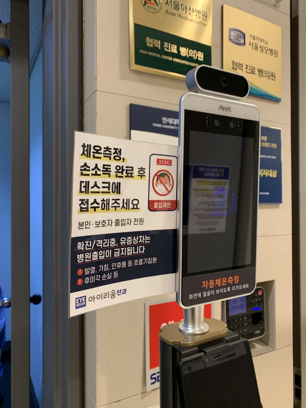 아이리움안과 건물로 입장하는 모든 출입구에는 열감지 카메라가 설치되어 있으니