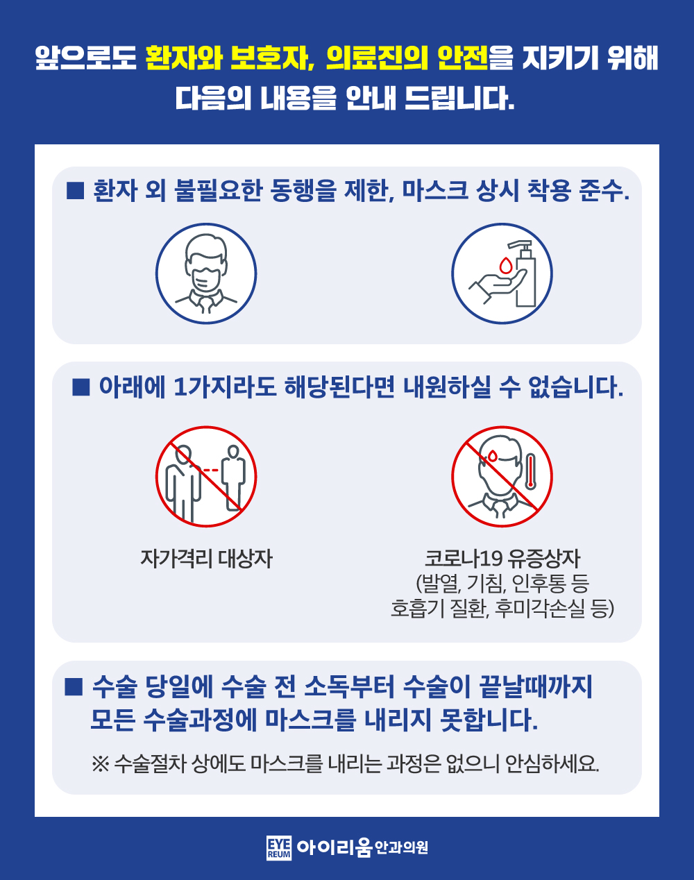 < 아이리움안과 감염예방 활동 안내 >