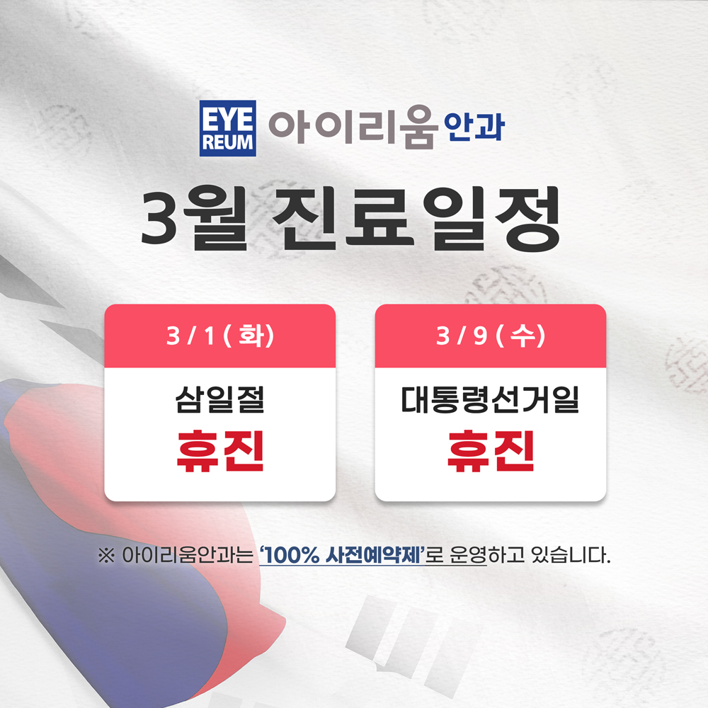 아이리움안과의 3월 진료일정을 안내드립니다.