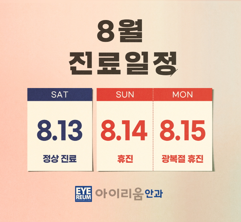[공지] 8.12-13 정상진료▶광복절(8.15) 휴진