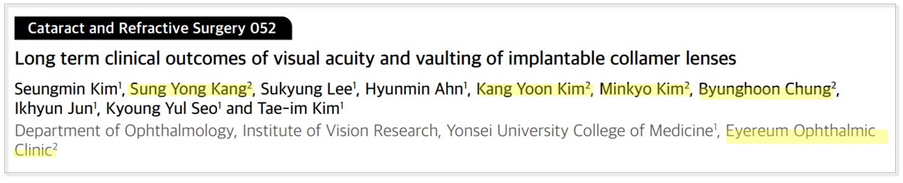 [소식] 대한안과학회 제 128회 학술대회 - ICL렌즈삽입술 5년 후 장기 지속성