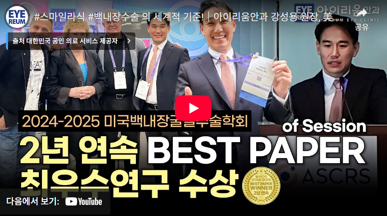 2025ASCRS 최우수연구(BEST PAPER) 2년 연속 수상(스마일라식, 백내장 등)