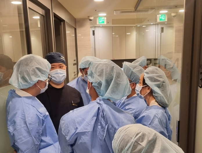최진영 원장의 ICL수술을 참관중인 프레아 앙두엉 병원 의료진