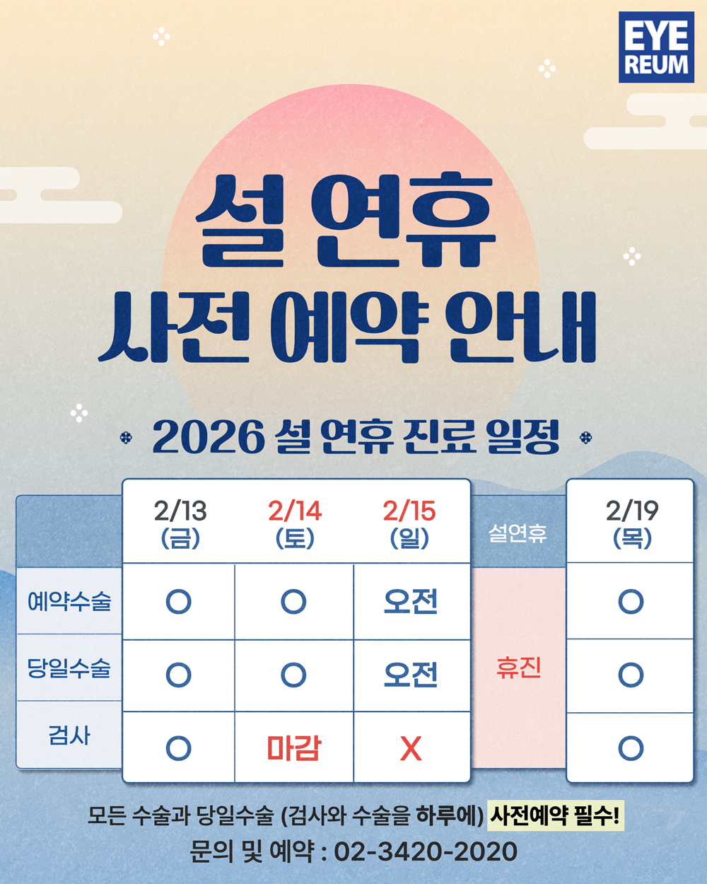 2026 설연휴 진료일정 안내(시력교정술 사전예약)_업데이트