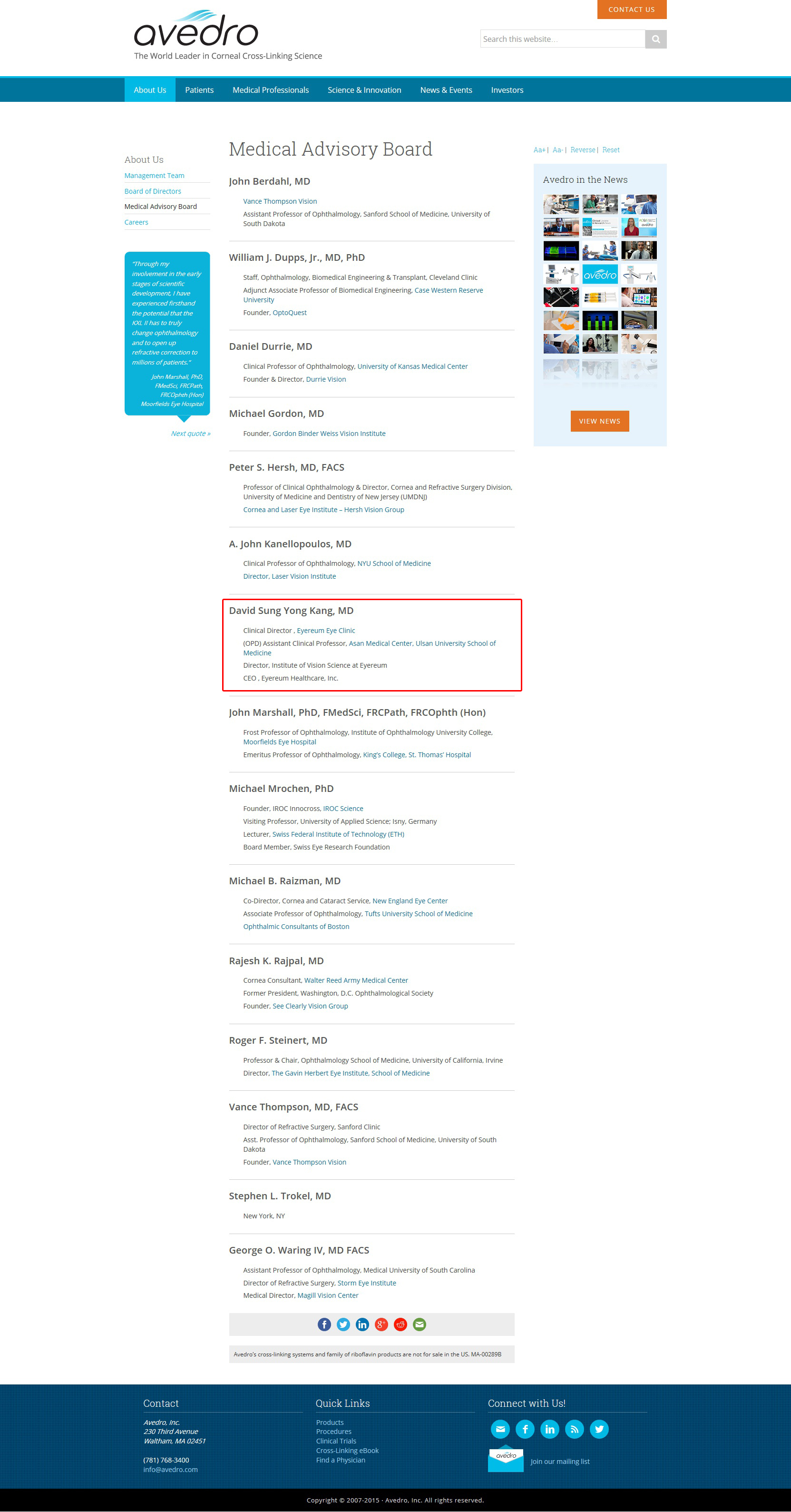 [소식] Avedro 社 공식 의학자문위원 (Medical Advisory Board)