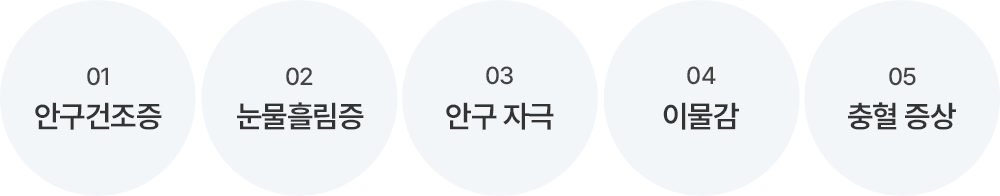 결막이완증이 발생하면 눈물의 정상적인 배출이 방해받아 눈 표면의 눈물막 형성이 불안정해져 안구건조증과 유사한 증상이 나타납니다.