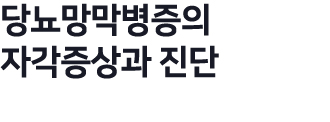 당뇨병은 대사성 질환으로 눈을 포함한 전신 조직에 광범위한 문제를 일으킵니다. 당뇨가 있는 환자에서 특유의 망막 순환장애가 생기는데, 이를 '당뇨망막병증'이라고 하며, 눈의 당뇨합병증 중 가장 중요하게 다루어지는 질환입니다. 당뇨병을 앓은 기간이 길수록 발병 확률이 높아지기 때문에 정기적인 안과 검진을 통한 조기 발견과 치료가 중요합니다.